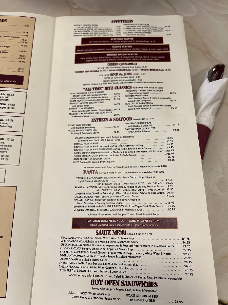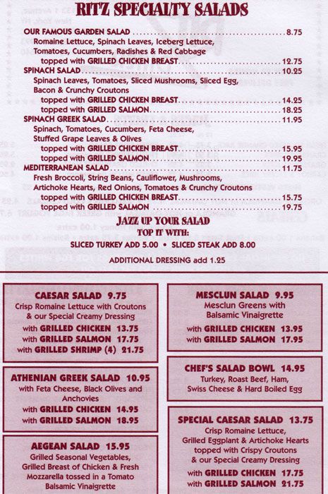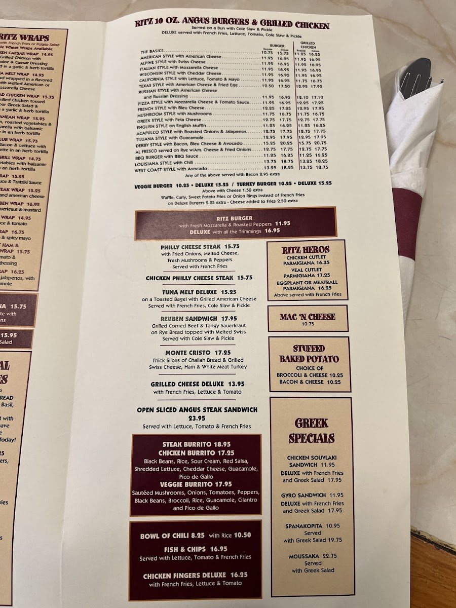 Ritz Diner Menu